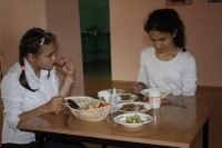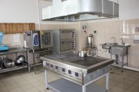 Приготовление пищи в школьной столовой осуществляется самостоятельно из продуктов, закупаемых образовательной организацией. Пищеблок имеет полный укомплектованный набор производственных помещений и обеденный зал на 56 мест. Все помещения соответствуют предъявляемым требованиям и нормам СанПина, полностью обеспечены мебелью, технологическим и холодильным оборудованием и посудой. Воспитанники дошкольных групп питаются в специально оборудованном помещении. Место специалиста по питанию оснащено компьютерной техникой и обеспечено выходом в интернет. Процесс организации питания осуществляется с помощью программного продукта «Вижен Софт: питание в школе».